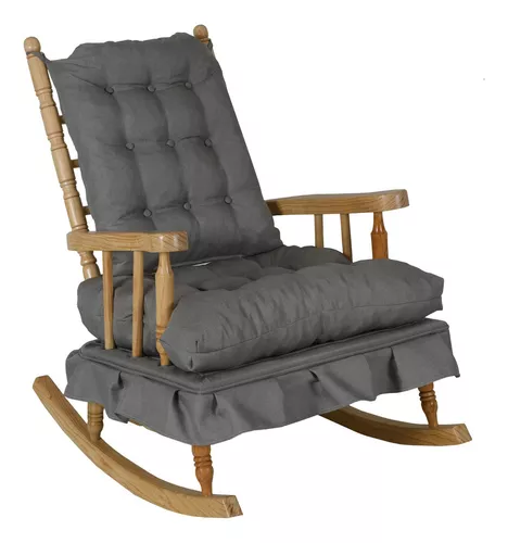 Silla Mecedora Sillon De Madera Maternidad Lactancia Moderna Color Gris