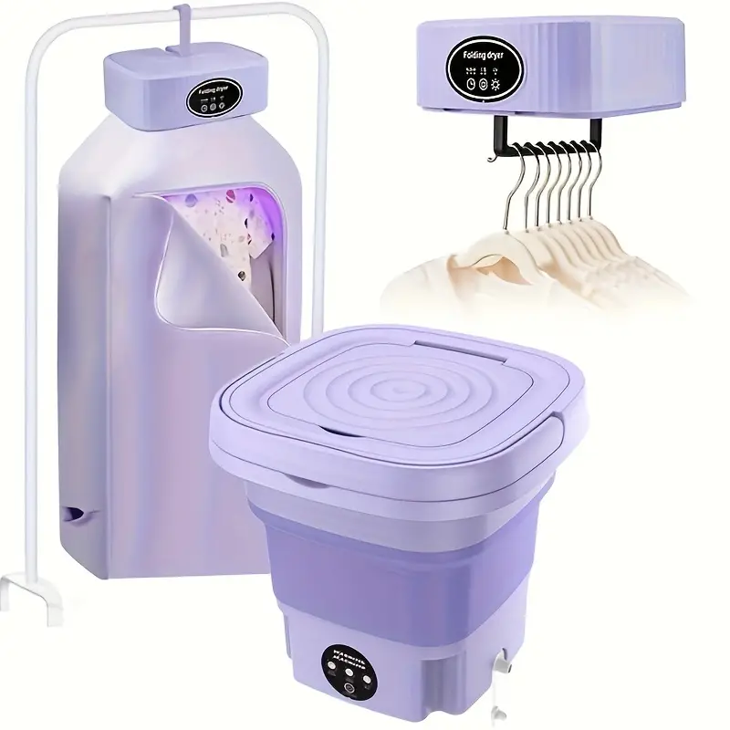 Una lavadora portátil + una secadora de ropa portátil, un total de dos juegos de lavado y secado, mini lavadora plegable, secadora portátil almacenable, hogar, viajes, automóvil, dormitorio y apartamento, fácil de usar y no ocupa espacio.