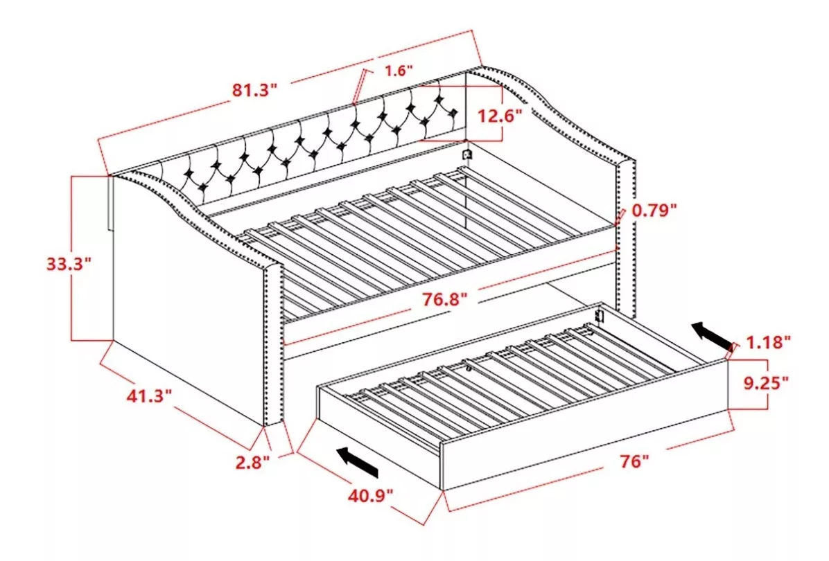 Cama Canguro Individual, Daybed Color Gris Con Estoperoles