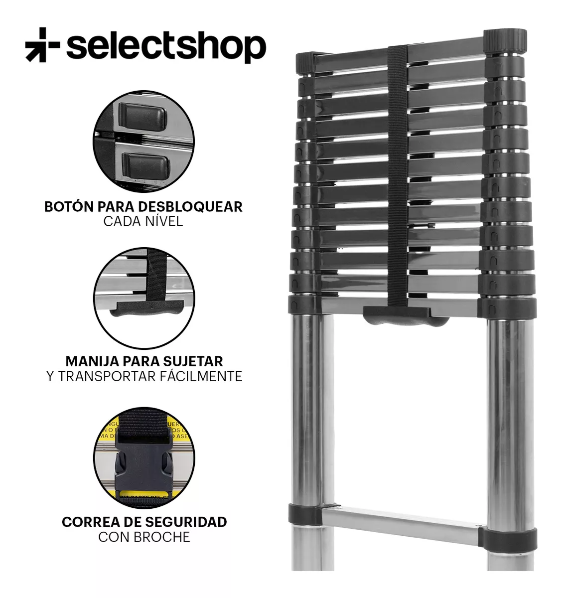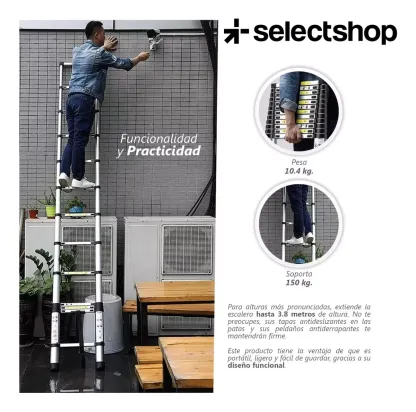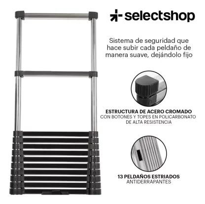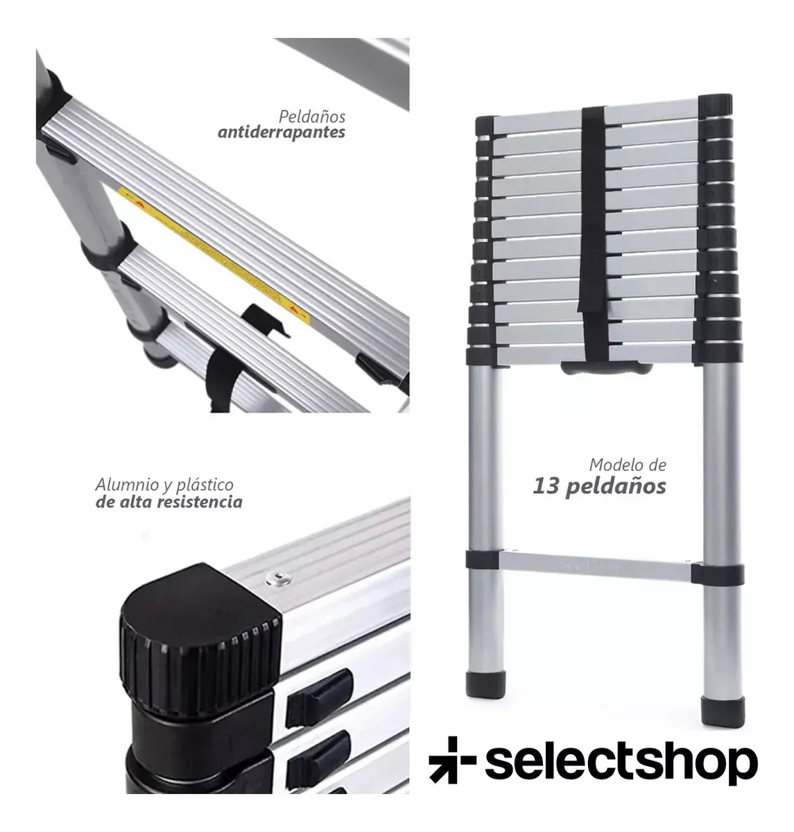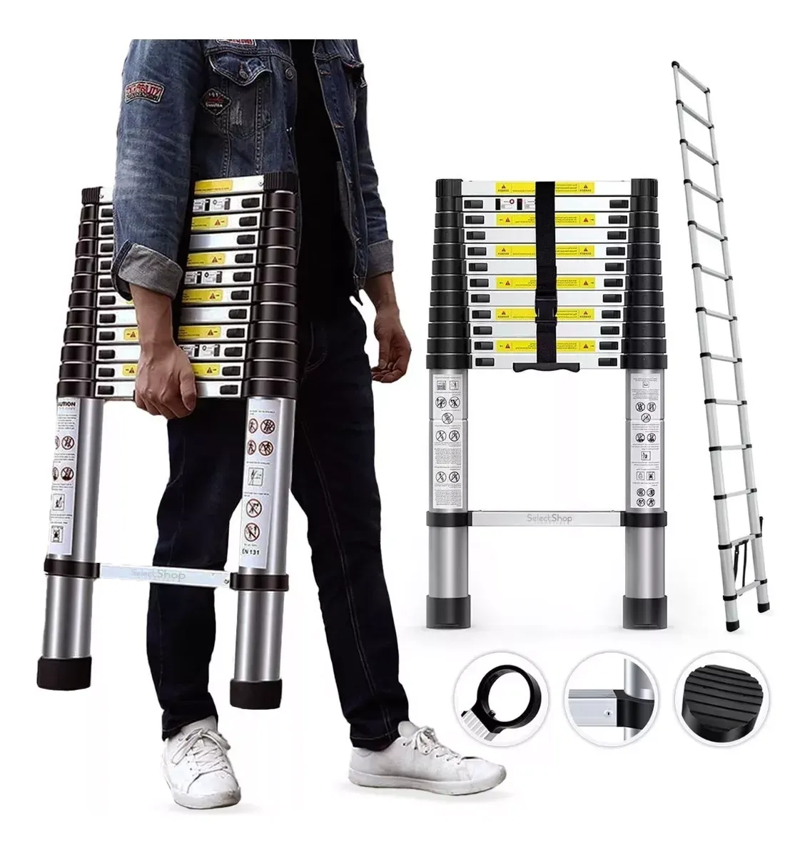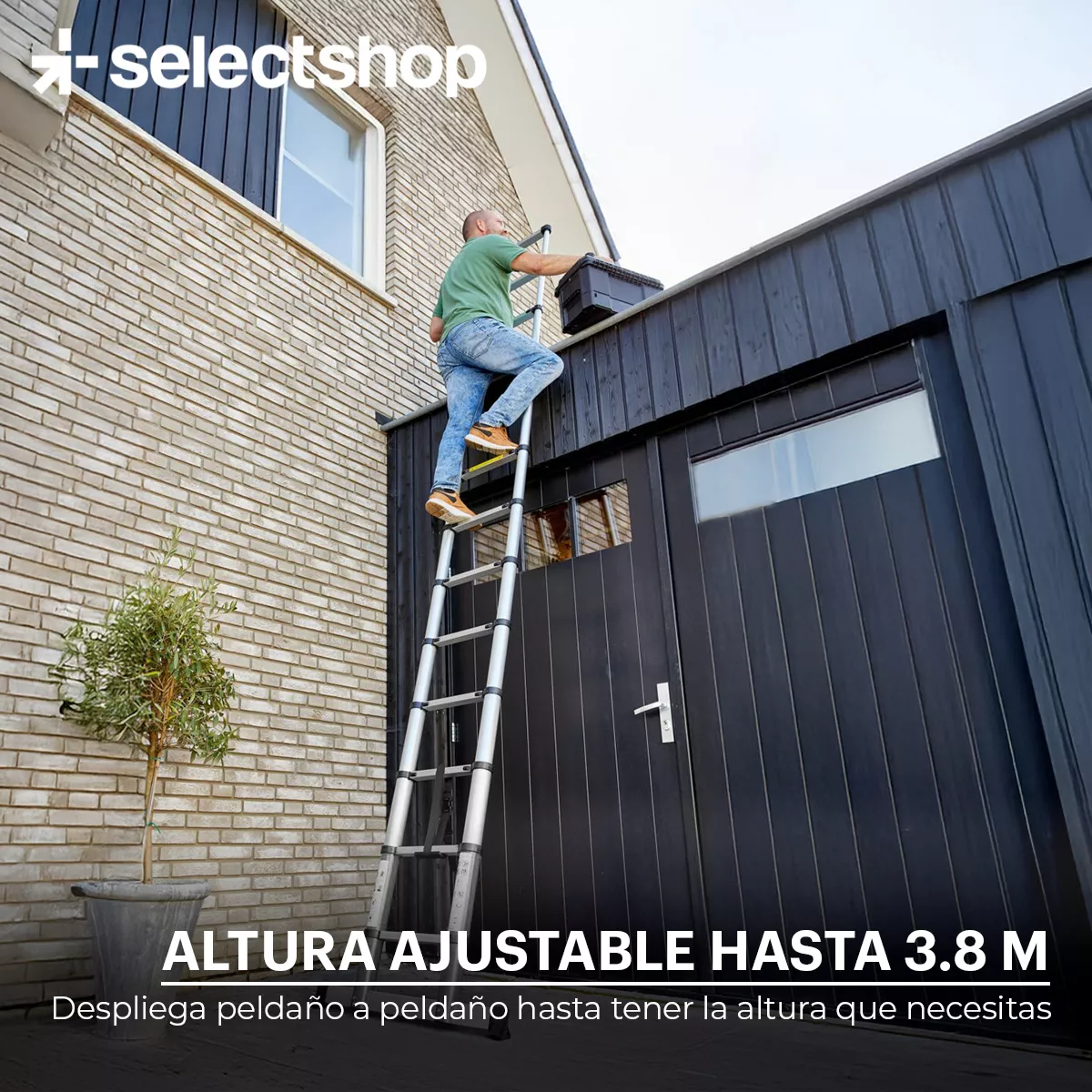 Escalera Telescópica 13 Peldaños Ajustable Retráctil 3.8