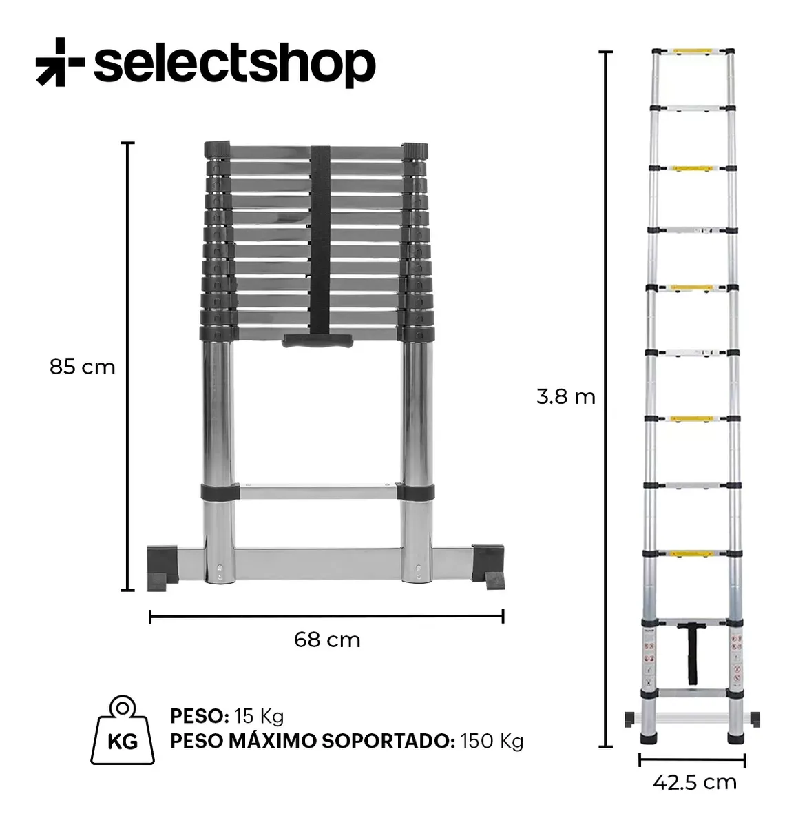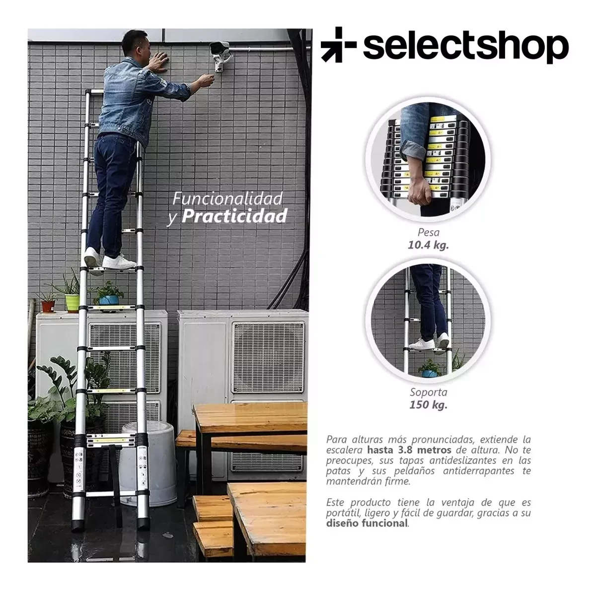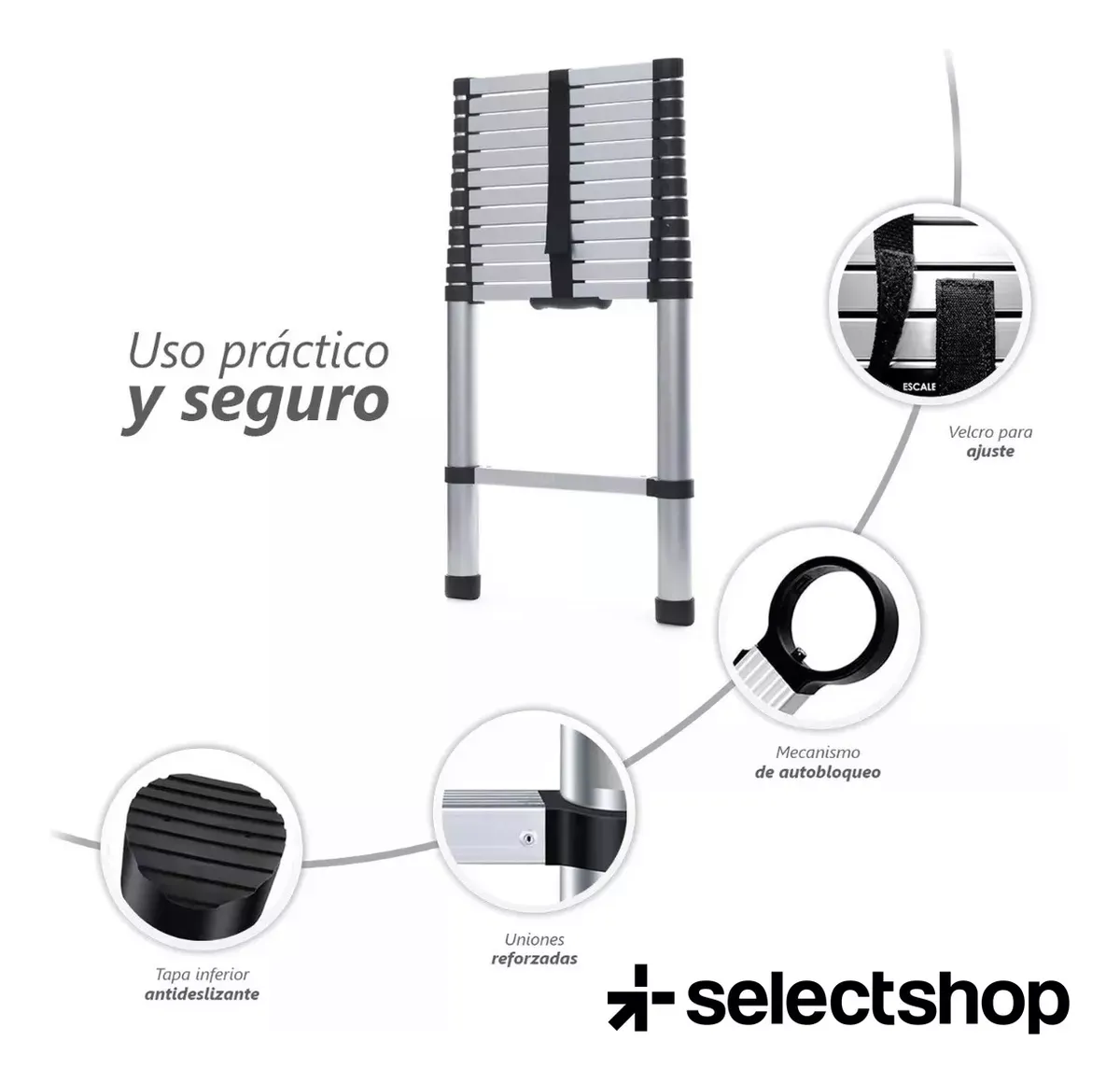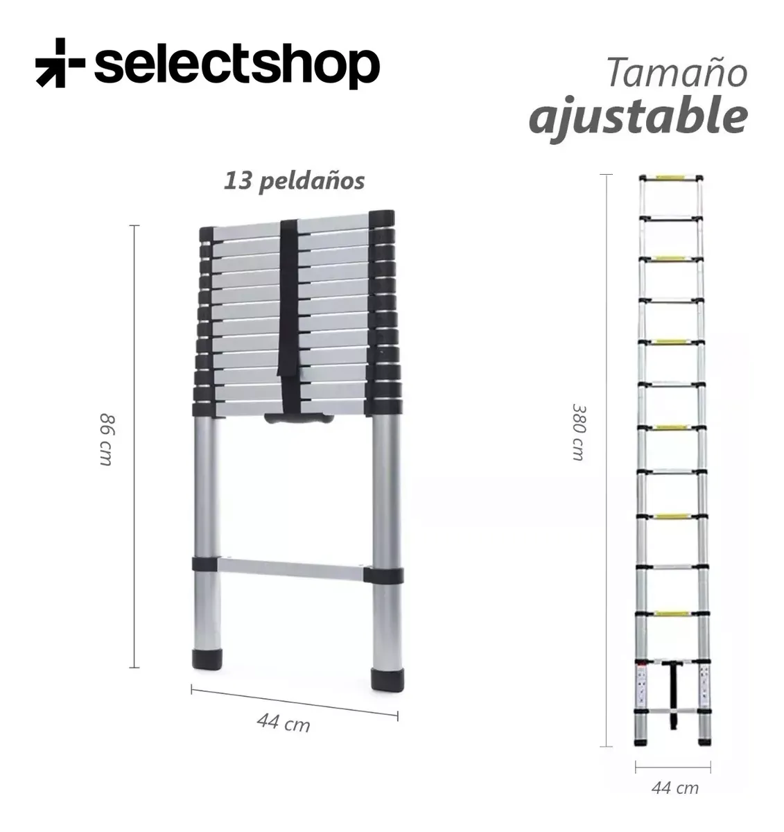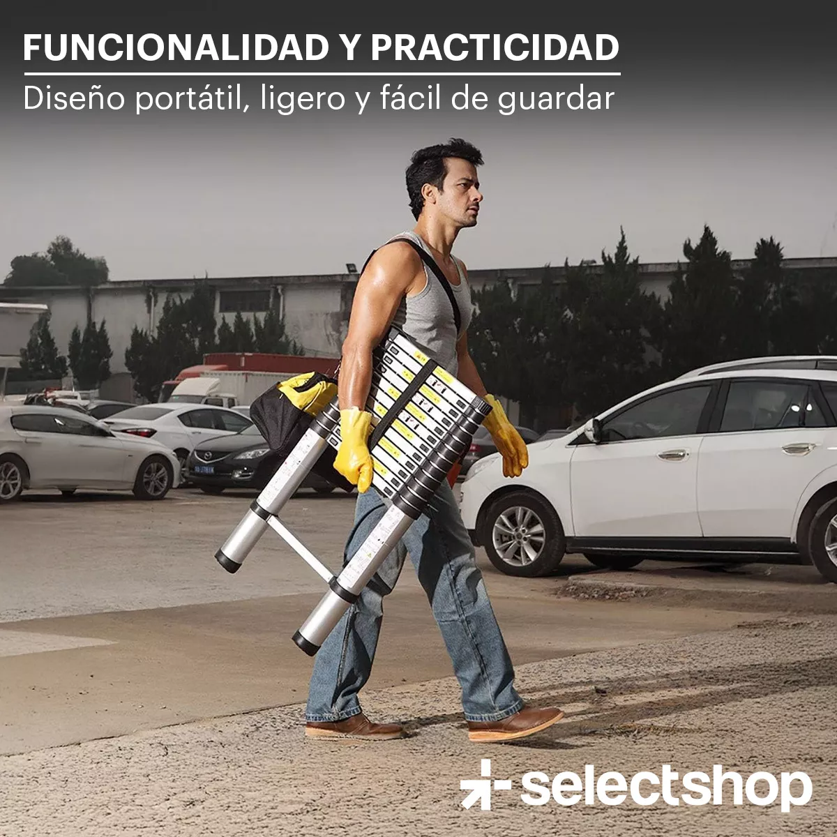 Escalera Telescópica 13 Peldaños Ajustable Retráctil 3.8