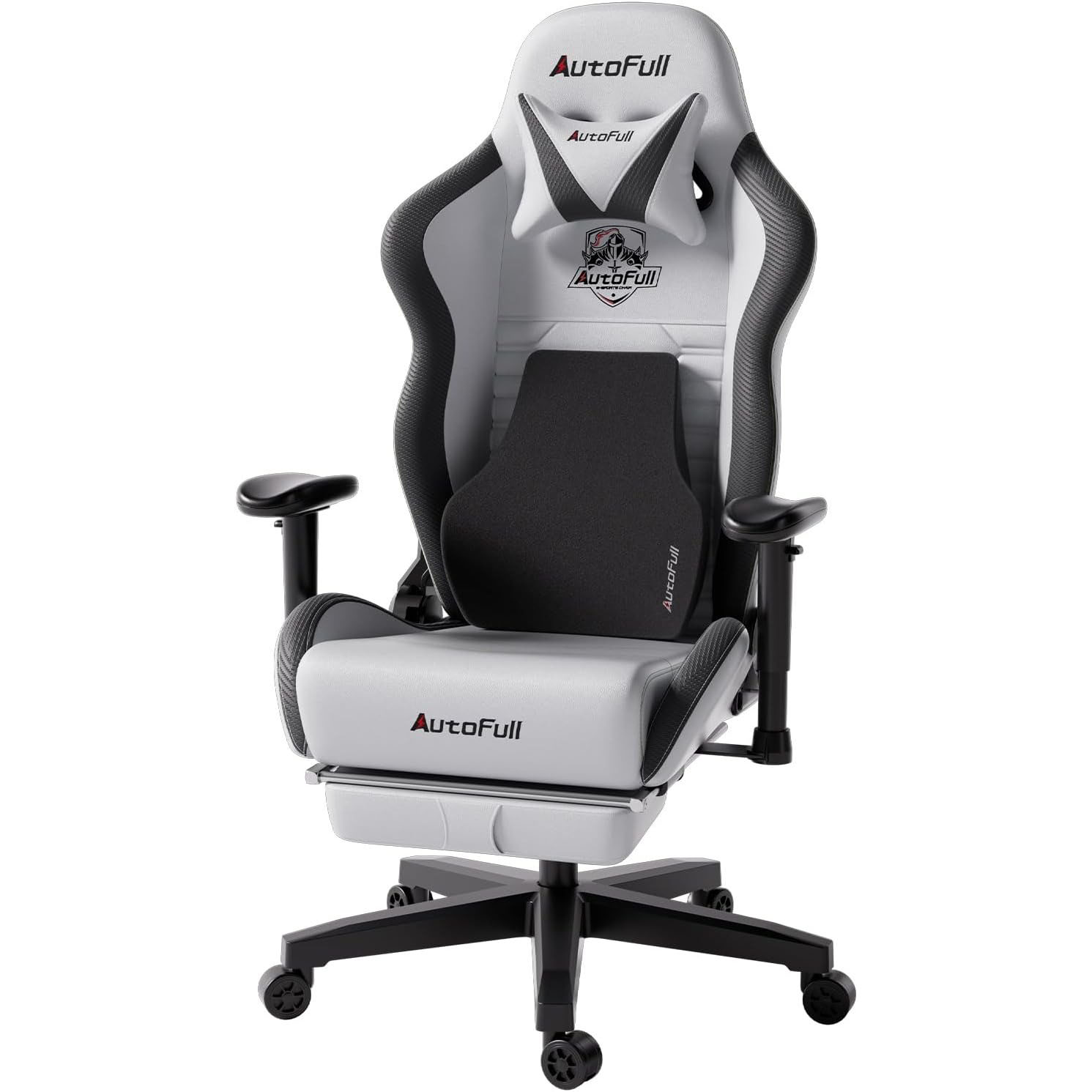 AutoFull Silla Gaming Silla Gamer Ergonómica Silla de Oficina Cuero de PU Silla de Escritorio,Altura e inclinación Ajustables,Reposacabezas y Soporte Lumbar,Reposapiés, (Gris)