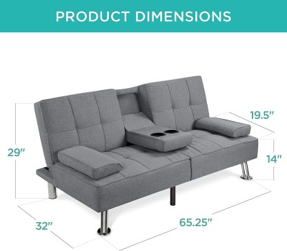 Best Choice Products Linen - Futón plegable moderno, sofá cama reclinable para departamento, recámara con reposabrazos extraíbles, 2 portavasos, color gris