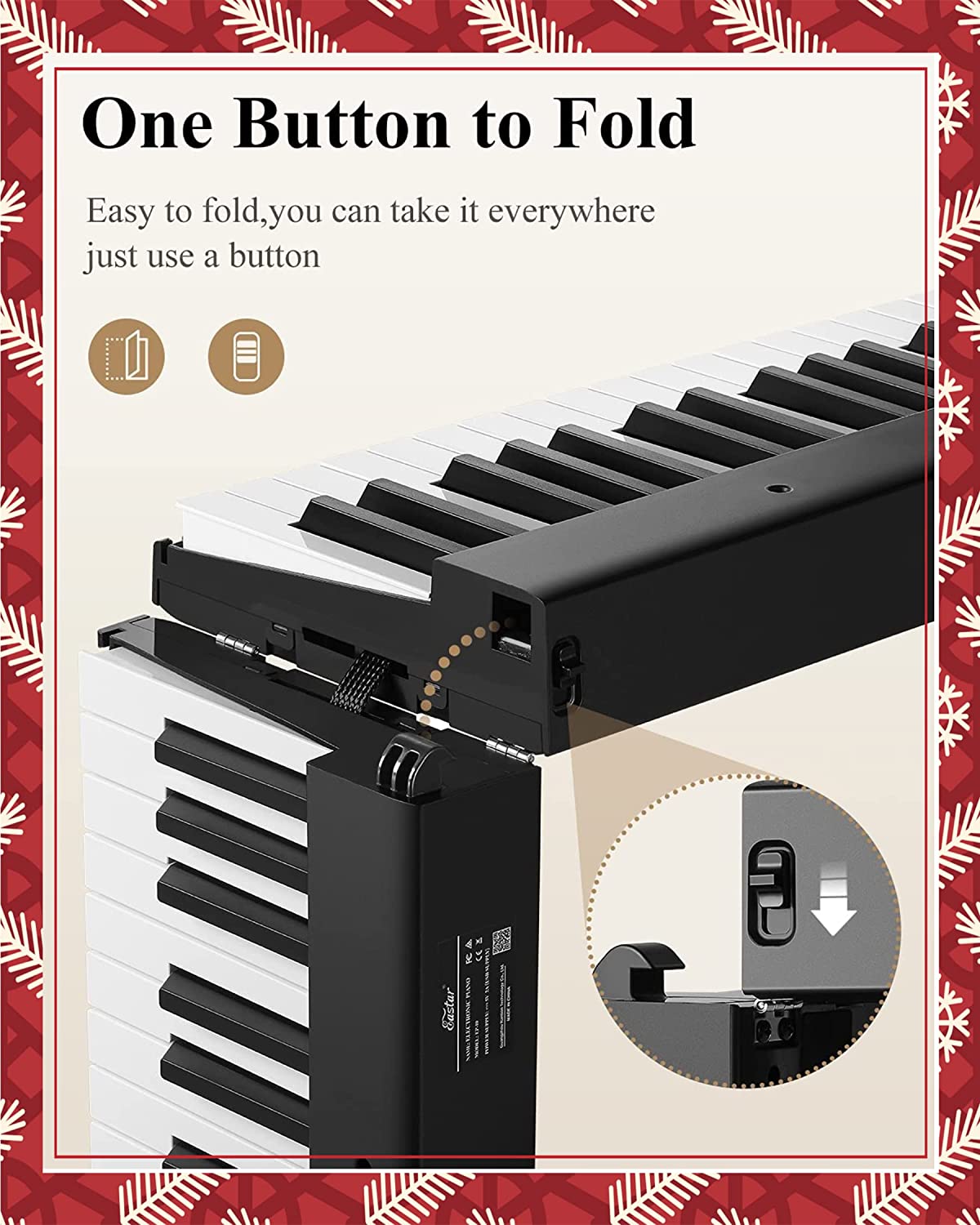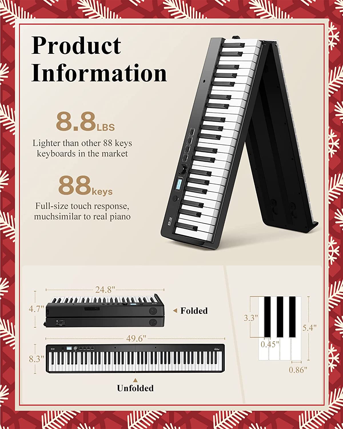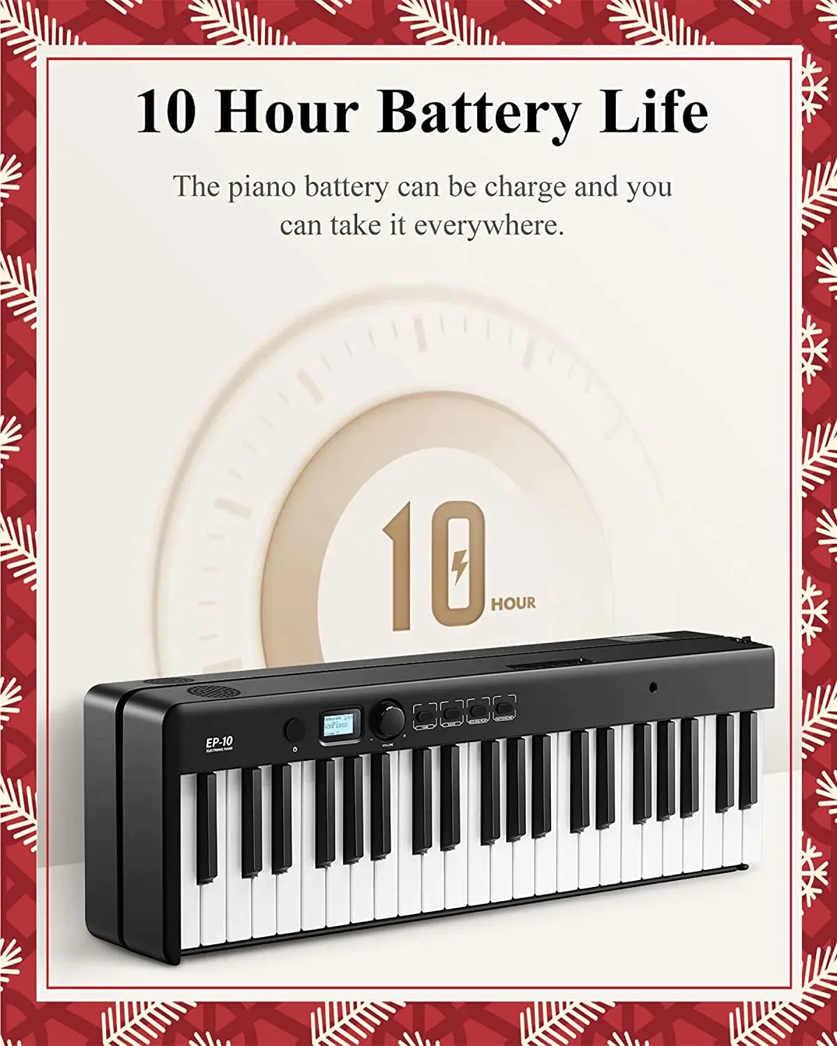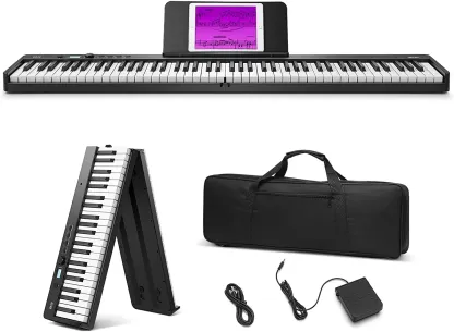 【Tocando sobre la marcha】El diseño plegable te facilita llevar el teclado de piano dondequiera que vayan. Viene con energía o con baterías de litio recargables para una interpretación profesional del piano donde quiera que esté (8-10 h de tiempo de reproducción por carga completa), perfecto para obras al aire libre, práctica de banda, lecciones de piano.