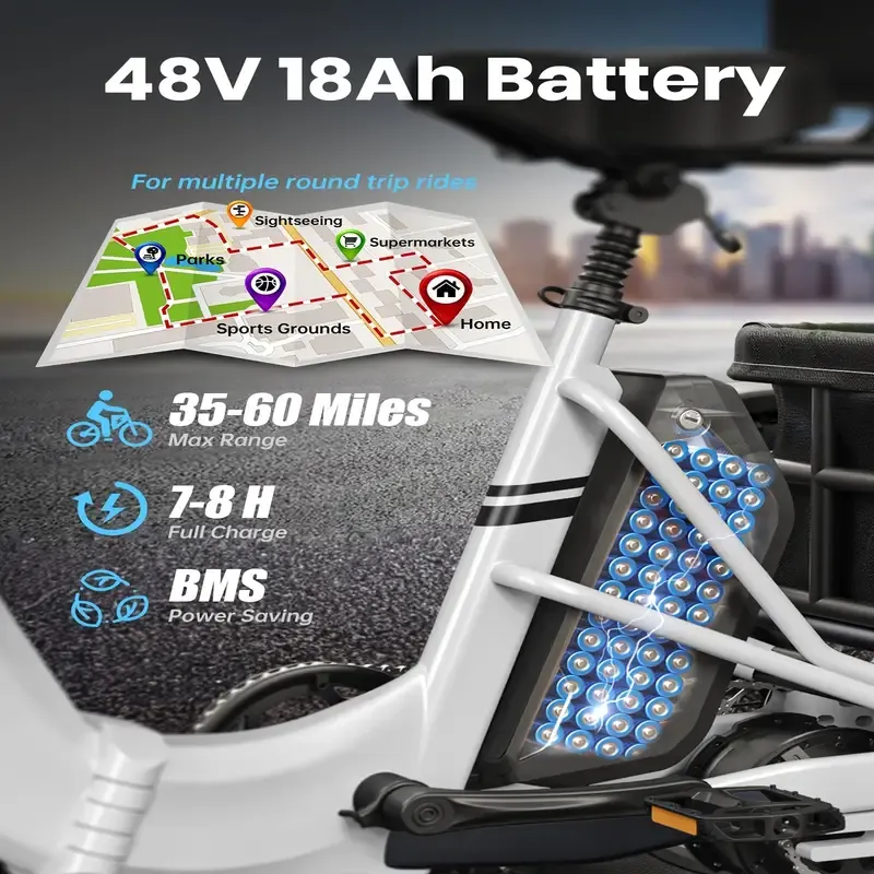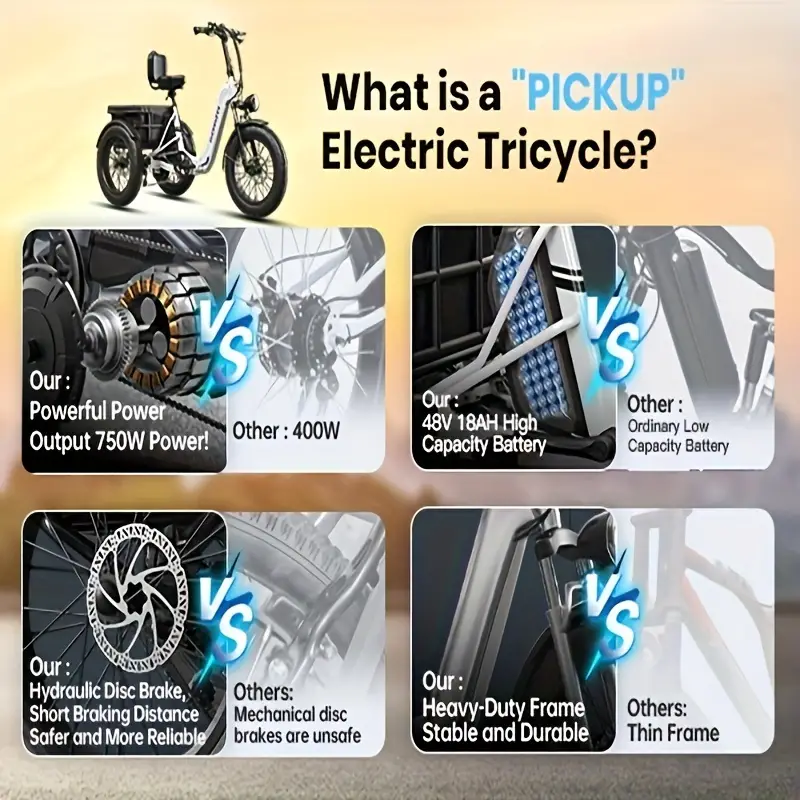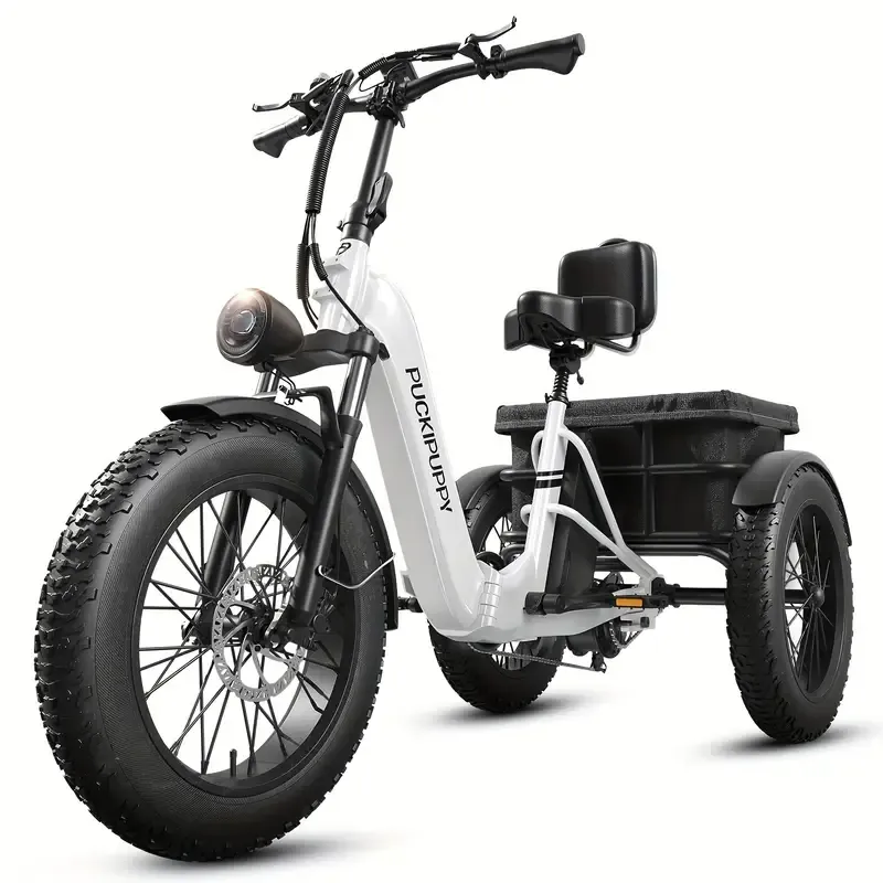Triciclo eléctrico para adultos, 110 millas de autonomía, 500 libras de carga, triciclo eléctrico de 20'' con neumáticos gruesos y cesta grande, diferencial trasero, batería de 48V/15Ah y 18Ah, motor de 750W para caminos de arena, caminos de ciudad