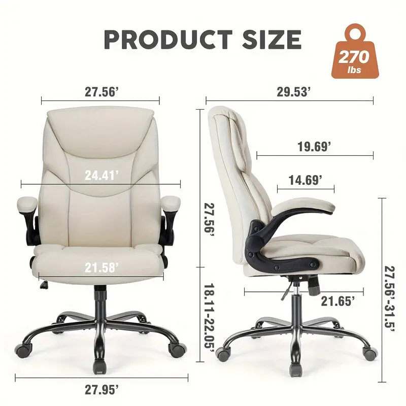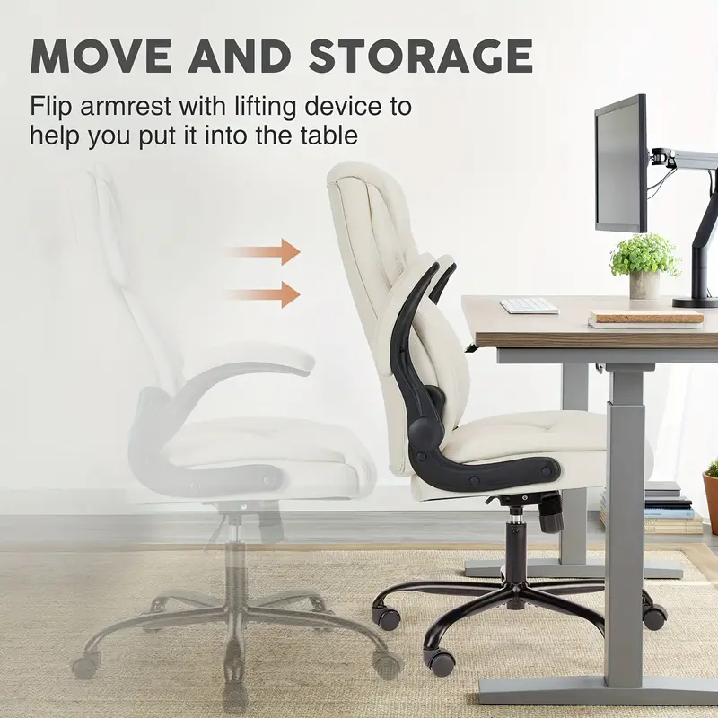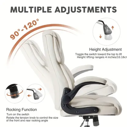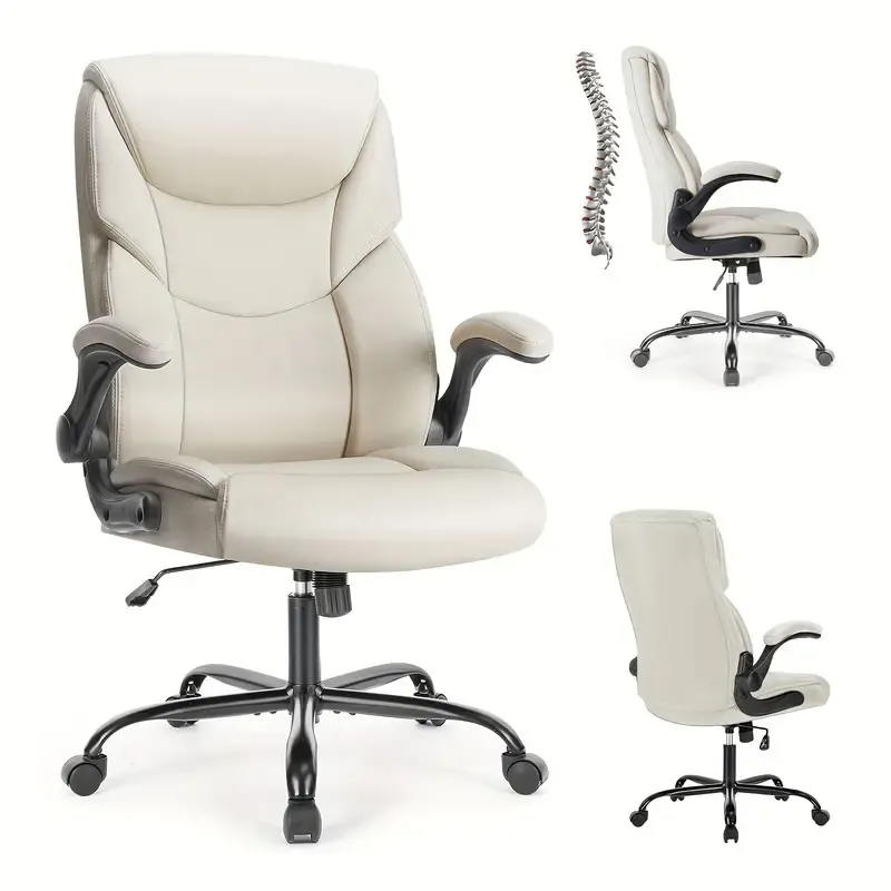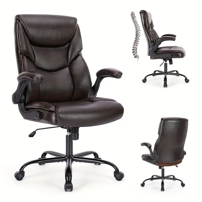 Silla de escritorio ejecutiva ergonómica con reposabrazos ajustables abatibles, silla giratoria con soporte lumbar, base de metal resistente, cuero PU