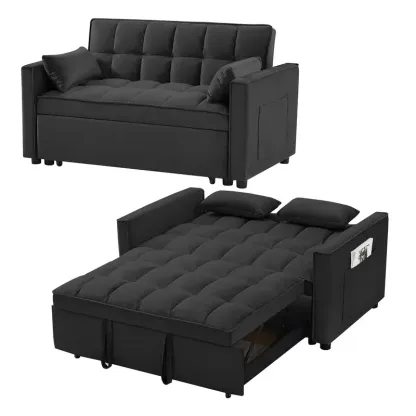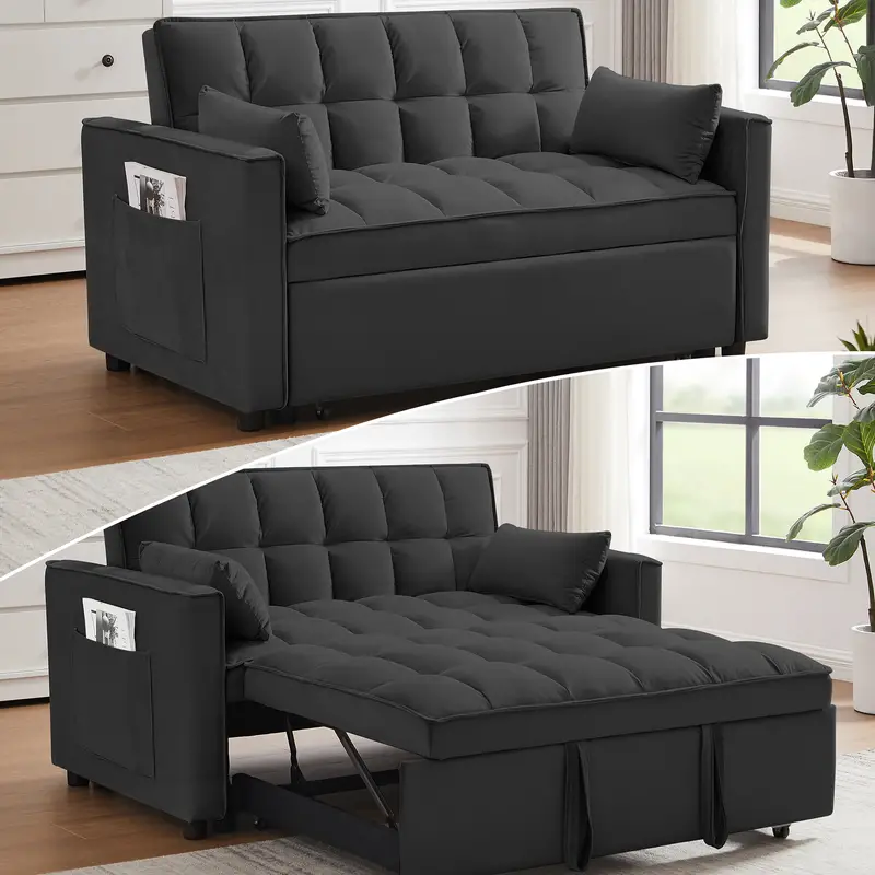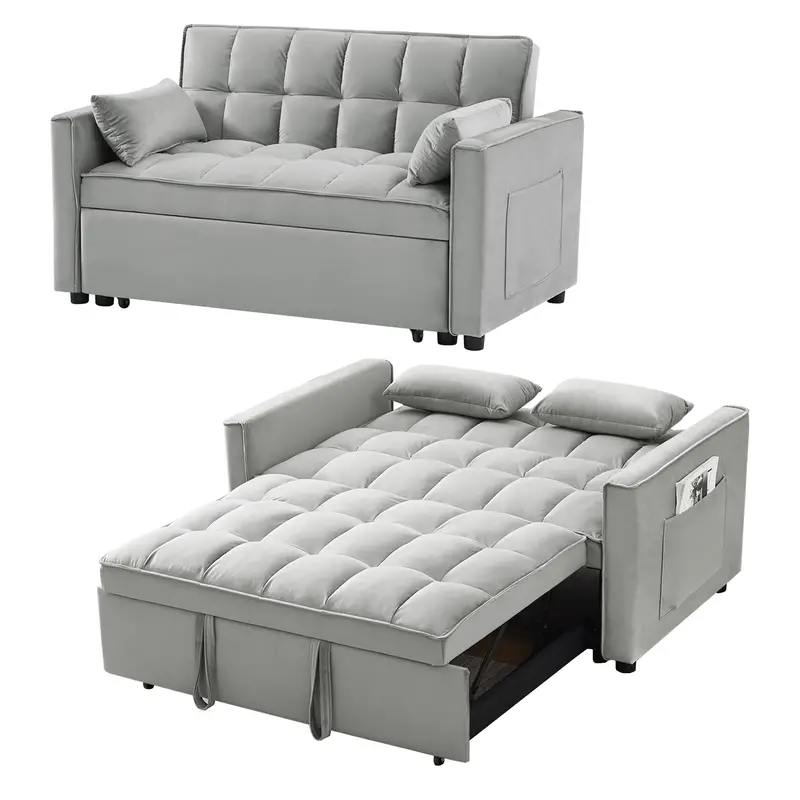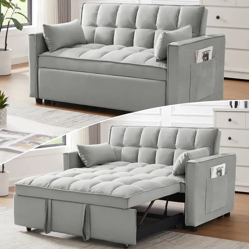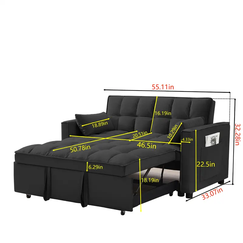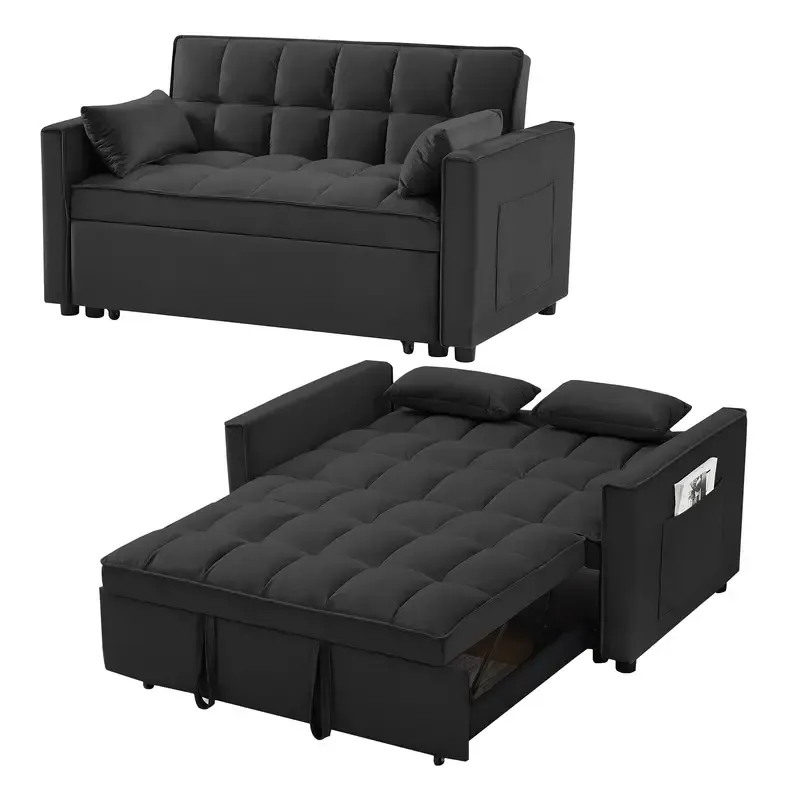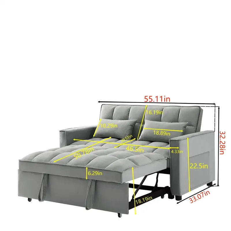 Introducción al sofá cama doble multifuncional ★SOFÁ CAMA CONVERTIBLE: tire de la manija incluida y se desliza sobre sus ruedas para hacer que el sofá de dos plazas se convierta fácilmente en cama cama, no importa qué habitación sea, ya sea una habitación grande o una habitación pequeña, ¡esta es su mejor opción! La cama cama cama doble puede acomodar a sus invitados durante la noche. ★ESTRUCTURA FUERTE: hecho a mano con un marco de madera resistente, resorte sinuoso y fuerte, espuma de alta densidad, tela de terciopelo suave, buenos asientos rellenos de espuma, 2 almohadas lumbares suaves que lo hacen sentir tan cómodo para tomar un buen descanso. La capacidad máxima de peso es de 500 libras. ★RESPALDO AJUSTABLE DE 3 NIVELES: este sofá convertible satisface sus diversas necesidades. Tan fácil de hacer que el sofá de dos plazas se convierta en la cama. Agradable para sentarse, acostarse y dormir, se puede convertir fácilmente en una tumbona o una cama cama para un pequeño apartamento, sala de estar, estudio, oficina en casa, etcétera. Después de terminar el trabajo del día, quítate los zapatos, túmbate en los cojines del sofá y apoya la espalda en el respaldo elástico. ★DISEÑO Y ALMACENAMIENTO QUE AHORRAN ESPACIO Características del producto Tire del asa incluida y se desliza hacia afuera en el rodillo, lo que facilita la conversión del sofá del amor en una cama cama,Tamaño de la cama: 69,7 pulgadas de largo x 44,1 pulgadas de ancho Nivel 3 El respaldo ajustable hace que sea fácil convertir una silla en una cama. Adecuado para sentarse, acostarse y dormir, se puede convertir fácilmente en un sillón reclinable o una cama cama El sofá cama convertible está hecho de terciopelo de alta calidad, suave y cómodo, y no es propenso a formar bolitas ni arrugas, Este sofá cama también viene con 2 almohadas suaves