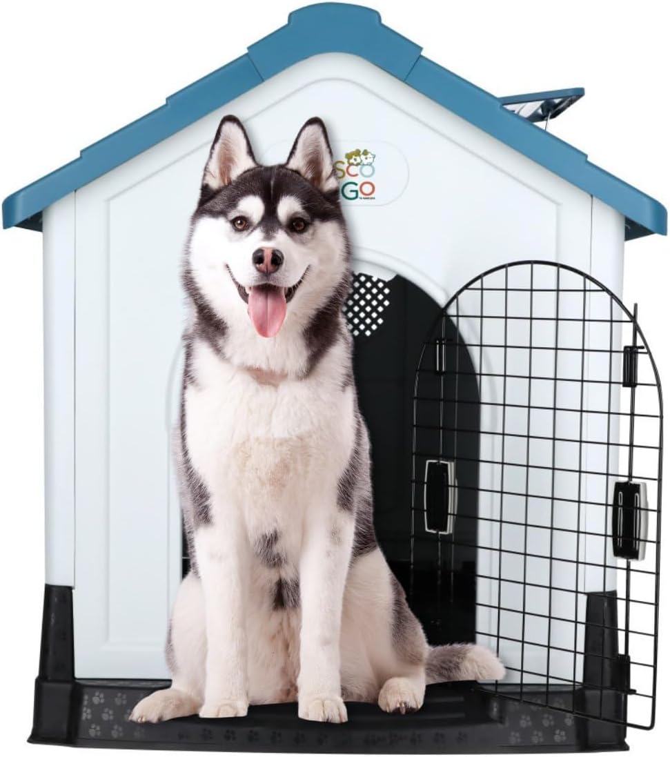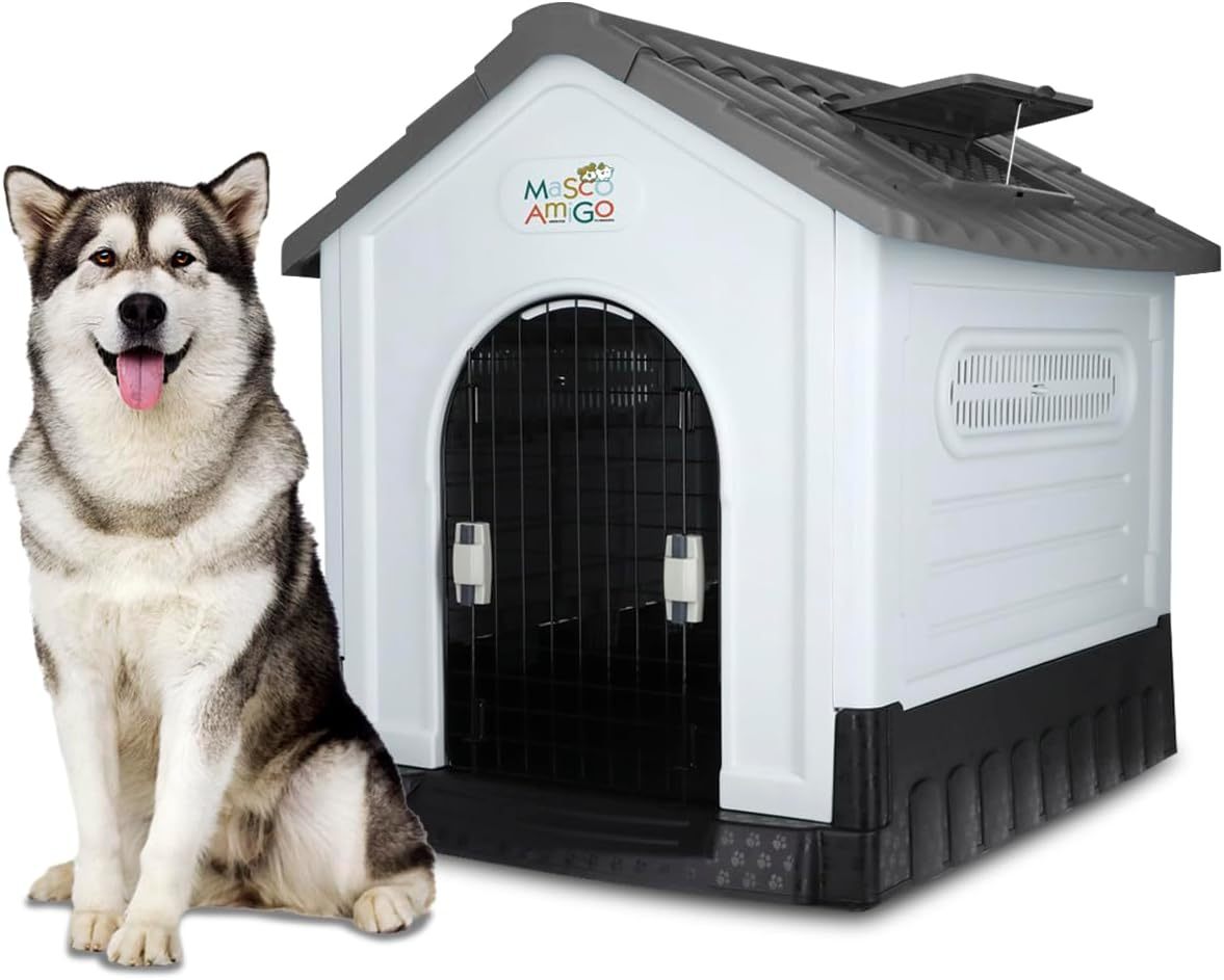 MASCOAMIGO Casa Térmica para Perros Razas Grandes Incluye Puerta con Seguro, Facil de Armar, Limpiar y Guardar, Medidas 105x88x99cm, con Protección UV