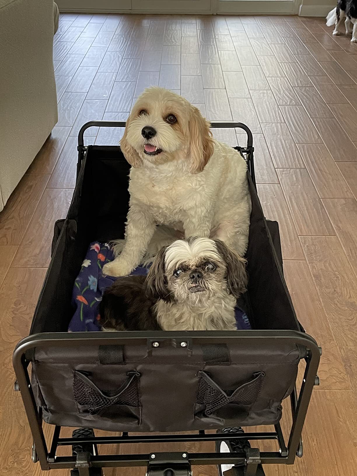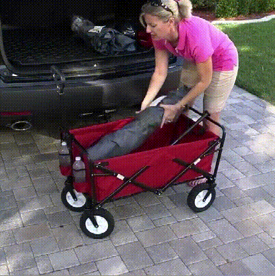 I bought this because my dog has lost the use of his legs and in his final days I thought it would be easier than always carrying him and now I can take him out and let him enjoy a walk and fresh air. The wagon rolls super smooth, it’s very strong and easy to fold. At first I had an issue getting the handle to snap in the bracket so it doesn’t drop to the ground, but then I realized you need to kind of “turn and twist” into the bracket and it’s easy now that I realize you can’t just put it straight in. This is a great wagon for all kinds of uses and was so grateful it was delivered the next day. - Andrea S.