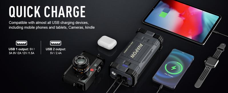 La fuente de alimentación de emergencia AVAPOW es ideal para una amplia gama de vehículos, incluyendo automóviles, camiones, motocicletas, barcos, casas rodantes y más. Es un accesorio indispensable para cualquiera que quiera evitar la molestia de quedarse varado por una batería descargada.