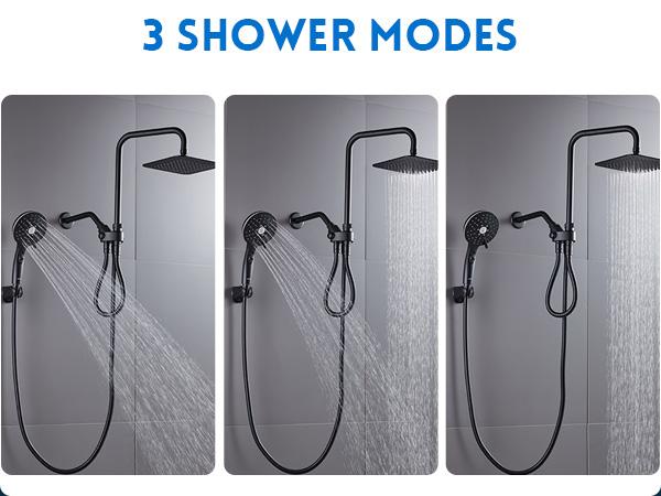 Cabezal de ducha doble combinado, cabezal de ducha de alta presión tipo lluvia de 8", duchas de mano ajustables con 5 configuraciones, barra deslizante de altura ajustable de 15", soporte/manguera, ángulo ajustable, cabezal de ducha de alta presión.