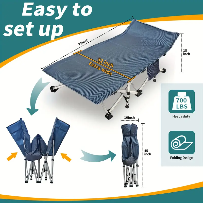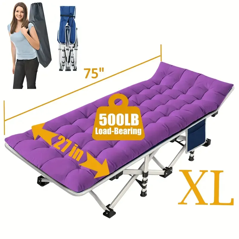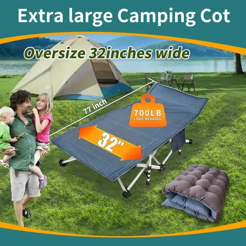 Cama de camping extragrande XXL de 32 pulgadas de ancho con cómodo colchón, cunas extra anchas para dormir, cama plegable para acampar, cama de camping resistente con bolsa de transporte para adultos, oficina en casa al aire libre
