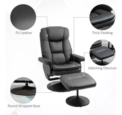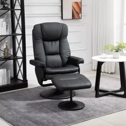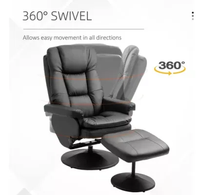 Sillón reclinable giratorio con otomana, silla reclinable de piel sintética con otomana, reclinable tapizado y reposapiés con base envuelta para sala de estar, dormitorio y oficina en casa,