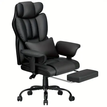 Silla de oficina grande y alta con soporte lumbar de masaje, silla de oficina reclinable de 450 libras con reposapiés, silla ergonómica de alta resistencia con reposabrazos acolchados ajustables