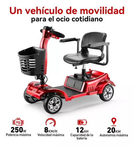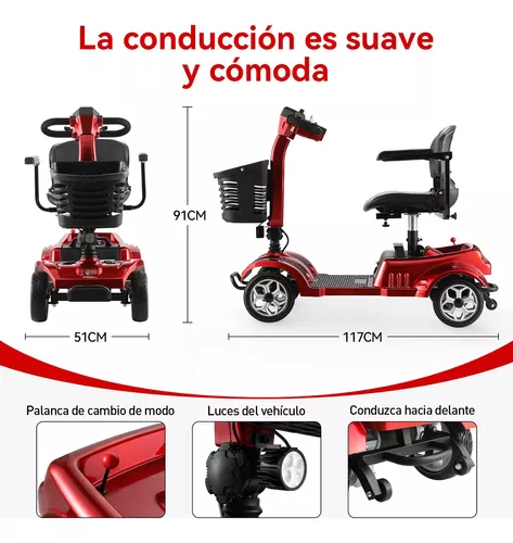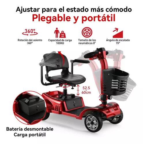 Silla De Ruedas Scooter Eléctrico Patín De 4 Ruedas Plegable Color Rojo