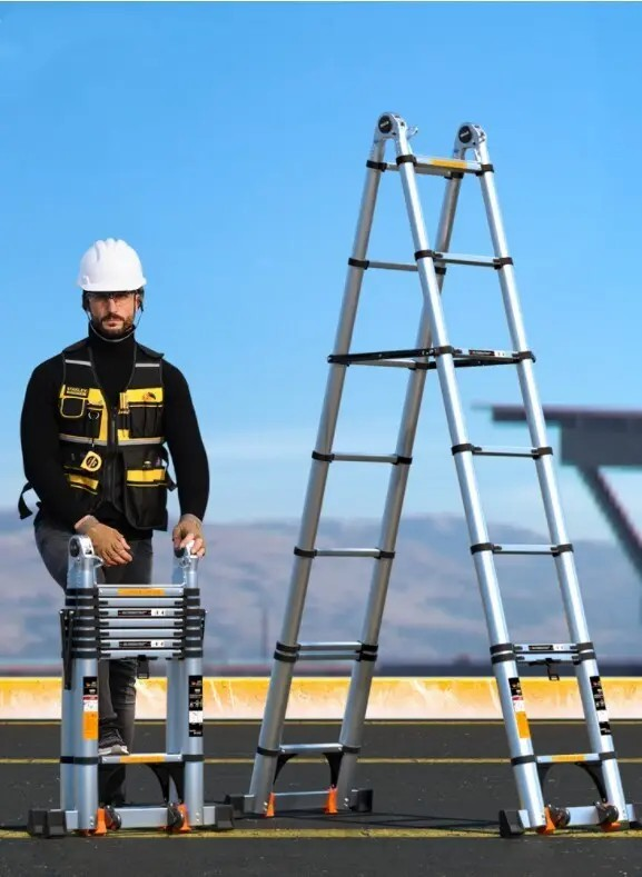 √ Conveniente: ¡Esta escalera se puede extender fácilmente y luego retraer a 2.9 pies con la retracción de un botón! ¡El innovador sistema de freno de aire ayuda a prevenir los dedos atrapados!