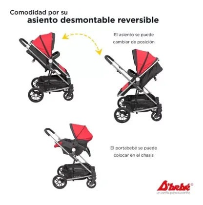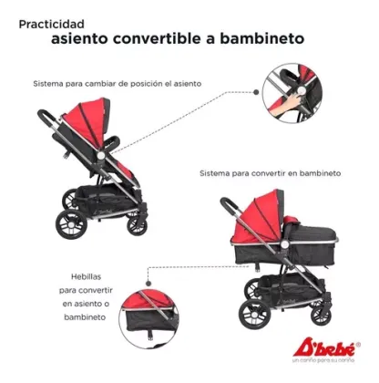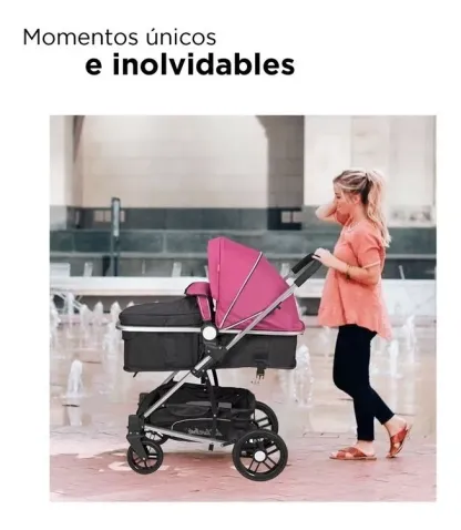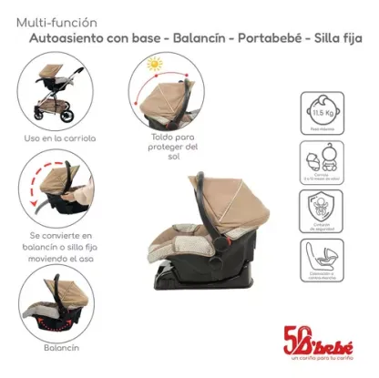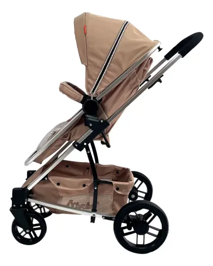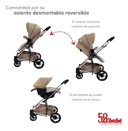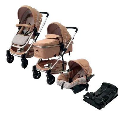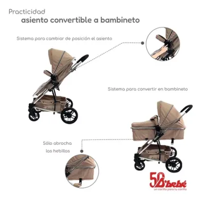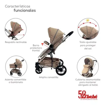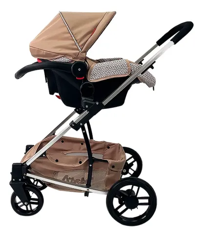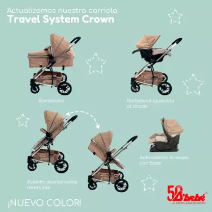 Carriola De Bebe Crown Portabebe Base De Carro Bambineto Color Beige Chasis Plateado