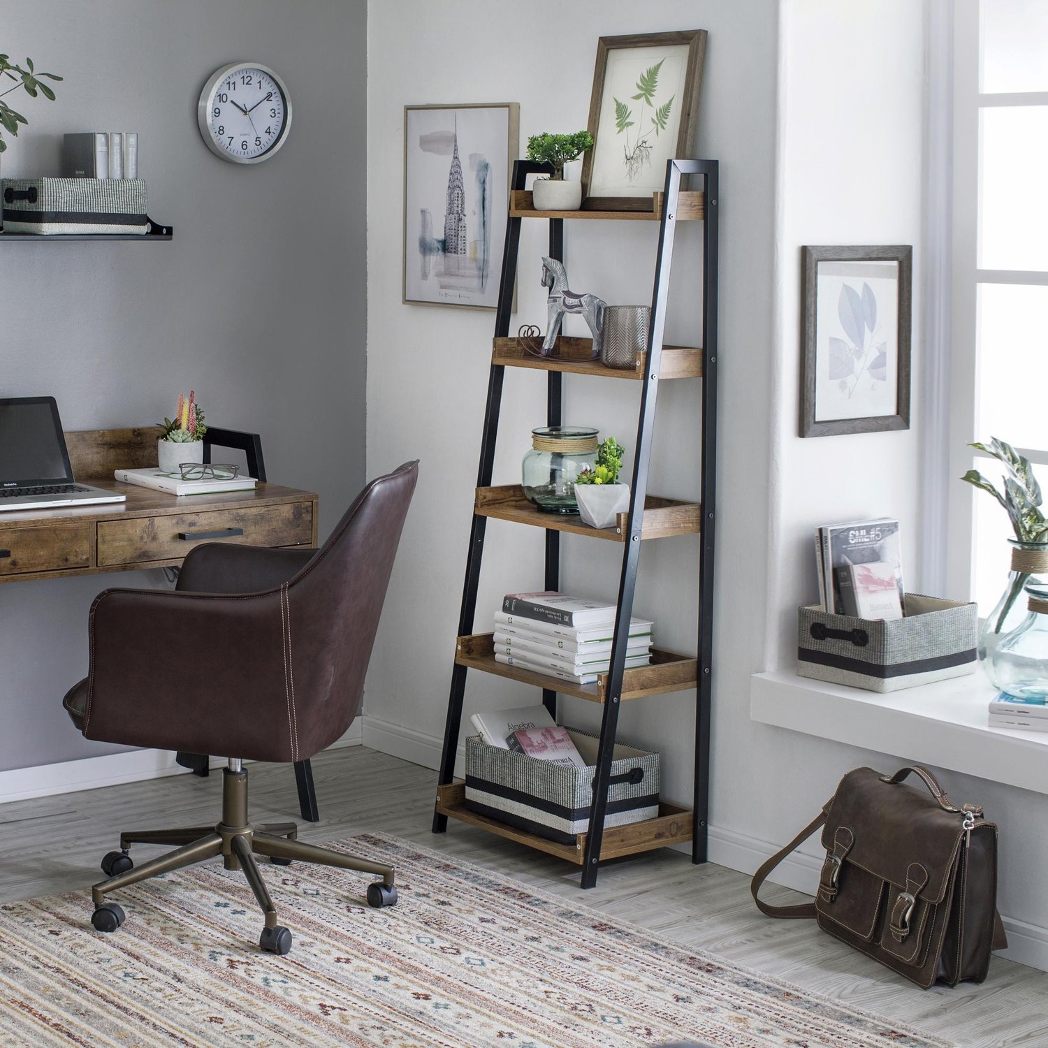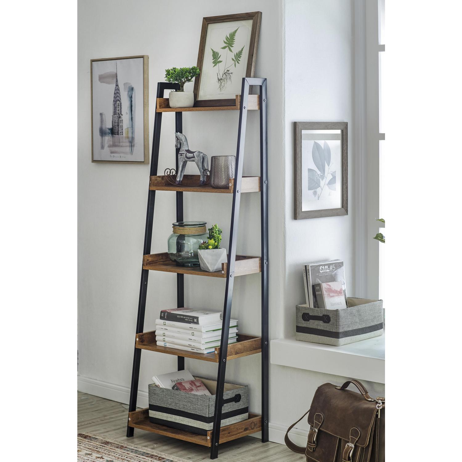 Dale un toque industrial a tu hogar con el Estante Rocky Hill, perfecto para organizar tus libros, plantas o adornos. Su diseño tipo escalera le da un toque relajado y rústico, y sus 5 repisas te permiten aprovechar al máximo el espacio. Con un peso máximo soportado de 5 kg, este estante es ideal para cualquier rincón de tu hogar.