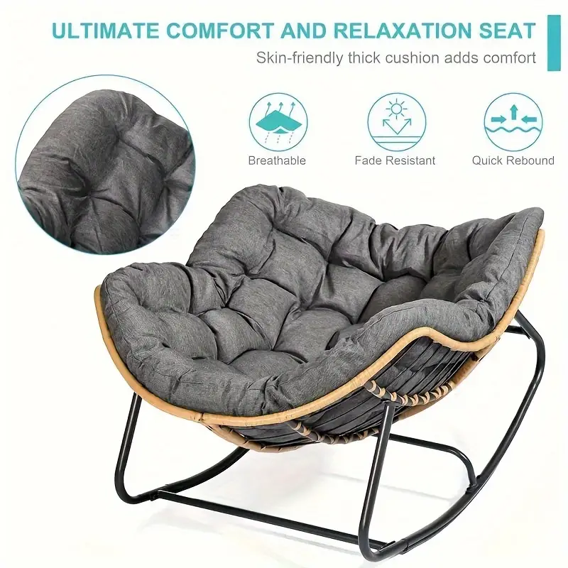 Silla de Balancín de Ratán Beige de Lujo con Cojín Suave - Perfecta para Uso Interior y Exterior, Ideal para Sala de Estar, Patio, Porche, Jardín Trasero, Camping y Senderismo