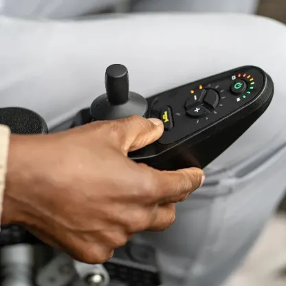 - Battery is charged while in place inside the chair via a port below the joystick control panel.