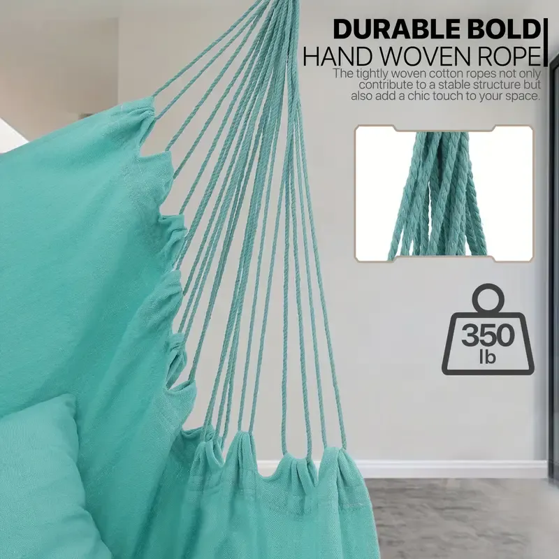Silla Hamaca MoNiBloom Columpio de Cuerda Colgante con 2 Cojines, Silla Colgante de Macramé Boho Capacidad Máxima de 350 lb con Bolsillo, Kit de Hardware Incluido