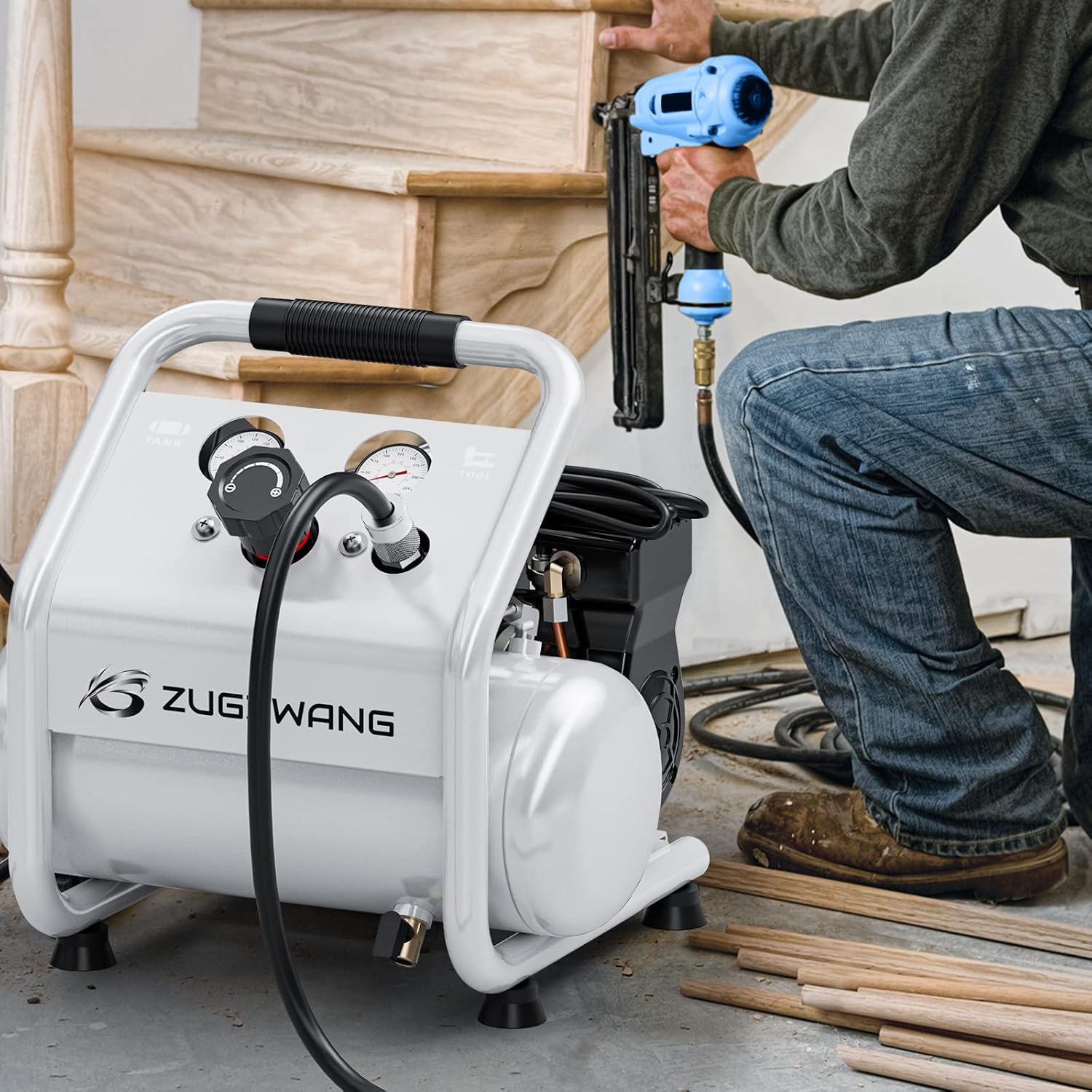 ZUGZWANG Compresor De Aire Silencioso Aceite Libre ZGACM1GAL 1.2 Gal